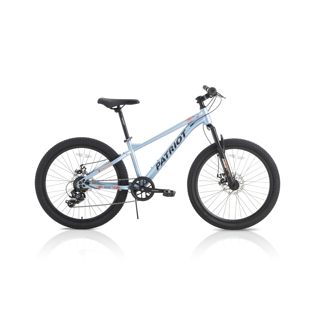 The Patriot Sonic 24 empowers young riders with a rugged 24″ steel frame MTB. Kids master trails using smooth 1×7 Shimano Grip shifters and a reliable Tourney derailleur. Mechanical disc brakes ensure confident control. This 2026 model builds skills safely on playgrounds and paths