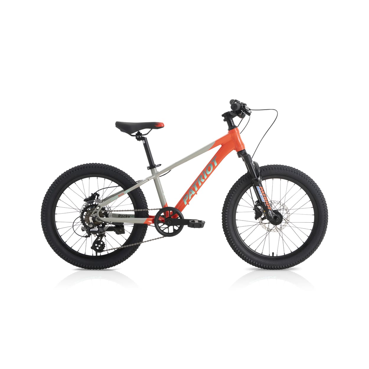 The Patriot Rocky 20″ equips young riders with a lightweight hydroformed alloy frame, 100mm suspension fork, hydraulic disc brakes, and reliable Shimano 7-speed shifting. Compact 20×2.3 tyres grip pavement and playground paths confidently. The included kickstand and kid-sized geometry deliver safe, fun performance for first adventures and daily rides.