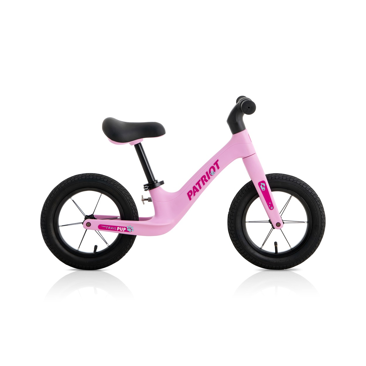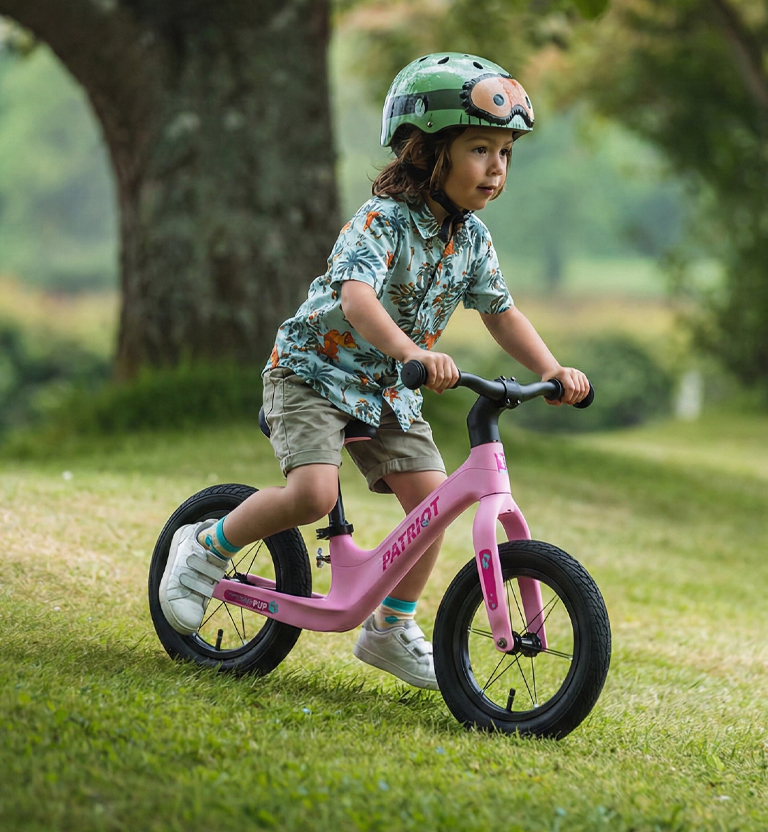 The Patriot TrailPUP 12″ balance bike sparks balance skills in toddlers with its lightweight PVC frame and aluminium wheels. Pedal-free design builds confidence through gliding fun. Quick-release seatpost clamp adjusts height easily for growing kids. Available in pink or green, this no-brake, no-gear trainer prepares little ones for their first pedal bike.