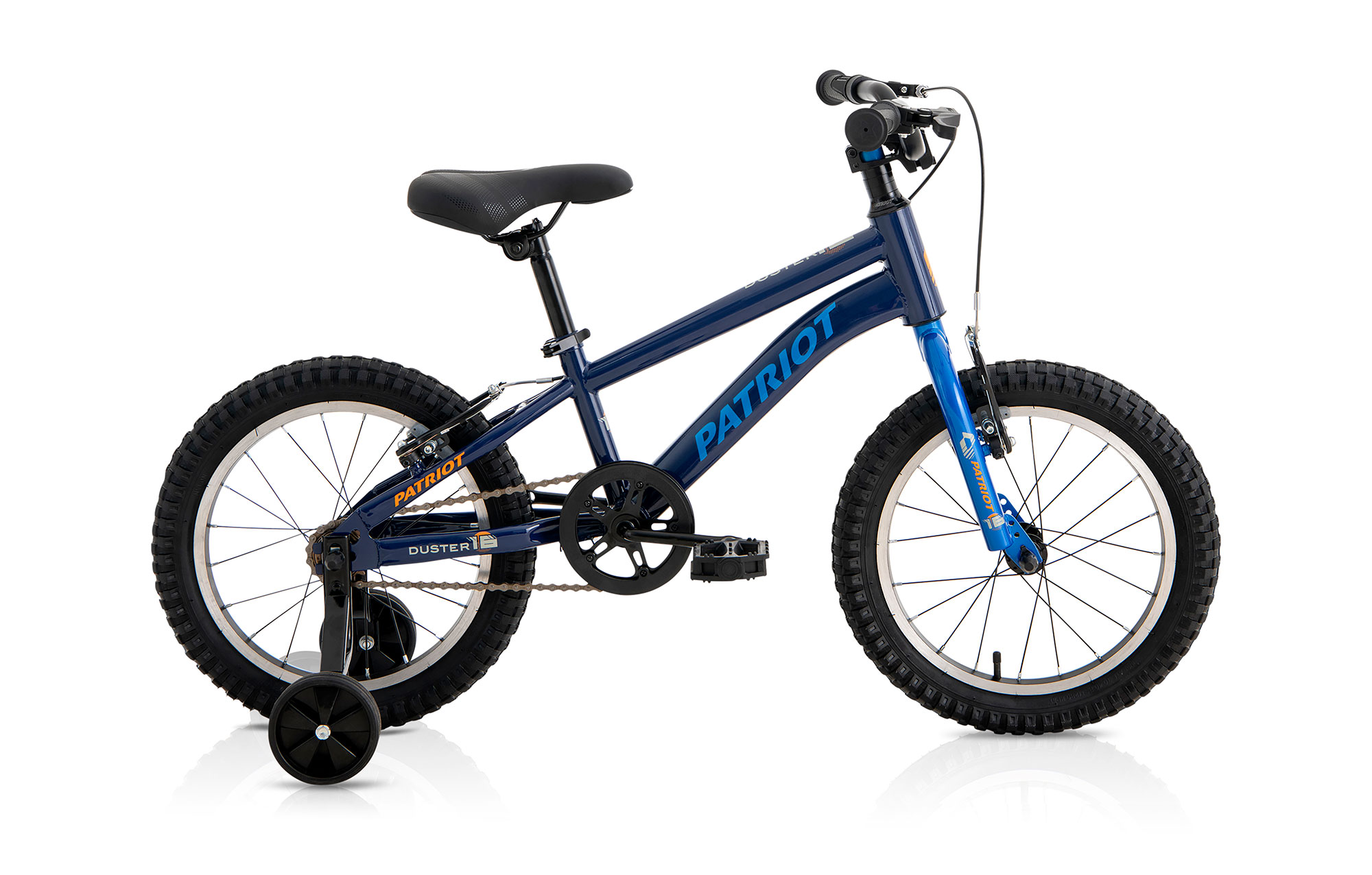 Designed for children aged 5–7 years (105–120cm tall), the Patriot Duster 16″ offers the perfect blend of safety, durability, and fun. Equipped with removable side wheels, young riders can start with added stability and gradually transition to independent riding as their balance improves.